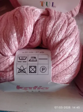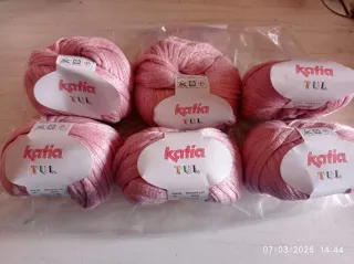 Se venden 6 ovillos de lana Katia TUL en color rosa. Perfectos para tus proyectos de tejido. - Marca: Katia - Modelo: TUL - Color: Rosa (TINT/DYE-LOT 32079) - Cantidad: 6 ovillos