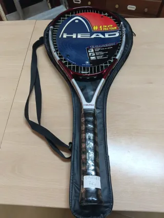 Raqueta de tenis HEAD T.Carbon, ideal para jugadores que buscan potencia y control. Incluye funda. - Modelo: T.Carbon - Color: Rojo y plateado - Incluye funda protectora - Precio original: 76€