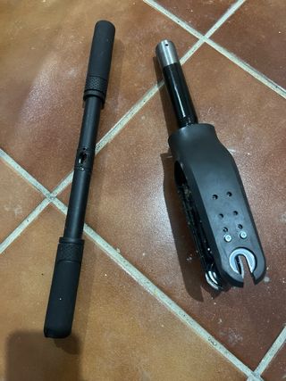 Se venden manillar y horquilla originales de Xiaomi Pro 2. Están en buen estado, aunque muestran señales normales de uso. - Manillar con empuñaduras de goma. - Horquilla negra con detalles metálicos.