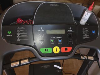 Vendo cinta de correr Domyos T5208 en buen estado. Se vende por no usarse. - Velocidad máxima: 13 km/h. - Inclinación máxima: 10%. - 10 programas de entrenamiento. - Funciones: Be Healthy y Calorie Burn.