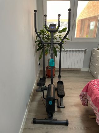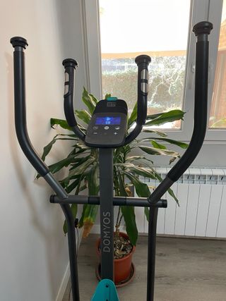 Elíptica Domyos modelo 120, ideal para entrenamientos en casa. - Diseño compacto y funcional. - Pantalla digital con información del ejercicio. - Pedales amplios y cómodos. - Manillar ergonómico.