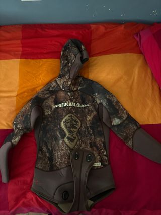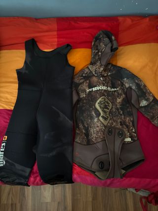Conjunto de neopreno para actividades acuáticas. - Neopreno Beuchat con diseño de camuflaje 7mm talla 3/M - Pantalón mares 5mm talla 3/M - Parte de arriba 60€ - Parte de abajo 40€