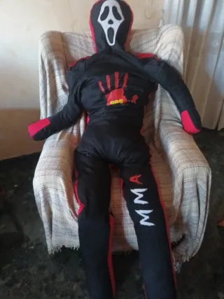 Muñeco de entrenamiento para lucha y MMA. Diseñado para simular un oponente. - Diseño con máscara de Scream. - Inscripción MMA en la pierna. - Mano roja con logo OBS en el pecho.