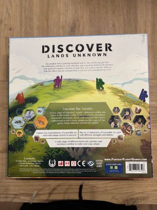 Juego de mesa Discover Lands Unknown. Una aventura de exploración y supervivencia. Para 1-4 jugadores. Diseño de juego por Corey Konieczka. Cada juego es único. En este caso, nos tocó terreno de NIEVE y terreno de DESIERTO. Es importación de USA, idioma inglés. Las cartas están enfundadas.