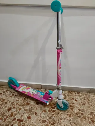Patinete infantil en excelente estado, casi sin uso. Se encuentra como nuevo. - Diseño llamativo con detalles de arcoíris y estrellas. - No Incluye casco y protecciones para codos y rodillas. - Ruedas de color verde. - Altura ajustable.
