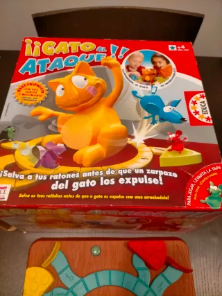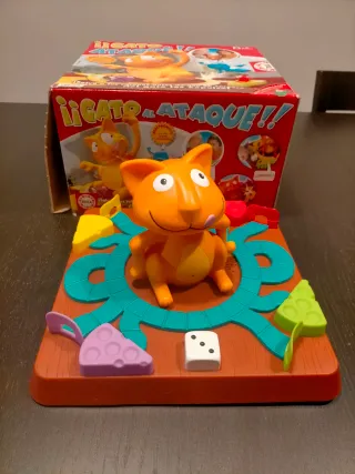 Divertido juego de mesa ¡Gato al Ataque! para niños a partir de 4 años. - Incluye tablero, gato y piezas. - Fomenta la agilidad y la estrategia. En muy buen estado, pero la caja se nota que fue usada