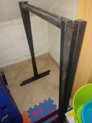 Barras paralelas para entrenamiento en casa o gimnasio. Estructura robusta de metal. Aguantan hasta mas de 120 kilos. Cómodas de guardar y versatiles - Diseño de doble barra. - Base estable en forma de T.