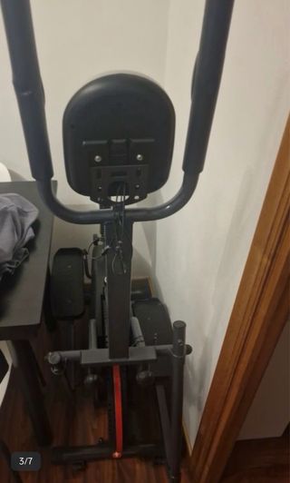 Elíptica de color negro y gris. - Diseño compacto. - Pedales amplios. - Manillar ergonómico.