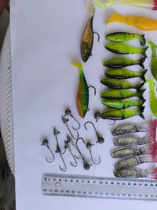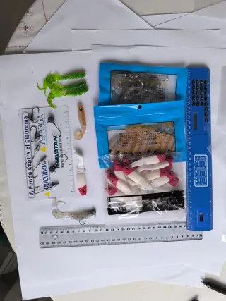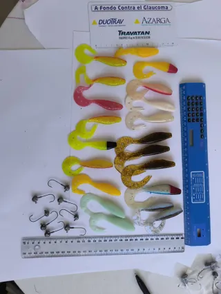 LOTE 61 Formado por pikies y grubs de doble cola ideales para perca, lucio, bass, lucioperca. Incluye anzuelos plomados. - Compras lo que ves en las fotos, no divido lotes ni quito/pongo artículos de uno para incorporarlos a otro. - Ofertas: compra tres lotes y obtenyun descuento de 5€. Compra cinco lotes y escoge un lote más totalmente gratis.