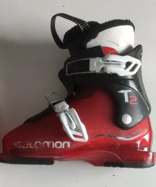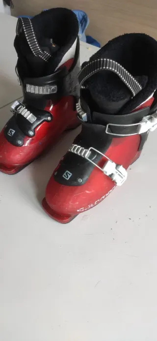 Botas de esquí infantiles de la marca Salomon en color rojo talla 21 (259mm) equivale 33-34euro. Con uso pero perfectas para su uso. - Cierre con hebillas. - Interior forrado en negro. - Logo de Salomon en la parte delantera.