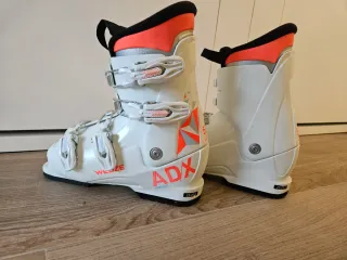 Botas de esquí junior Wedze ADX. - Talla 23/23.5 (aproximadamente 37.5) - Color blanco con detalles naranjas y grises. - Cierre con 4 ganchos metálicos. -Usadas una sola vez. Están como nuevas. Compradas en el año 2023.