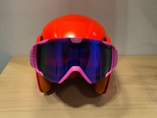 Conjunto ideal de casco y gafas de esquí para junior: - Casco marca Tijuana color naranja. - Casco talla 48-54 cm. - Gafas/máscara marca Cairn, correa morada con el logo de la marca.