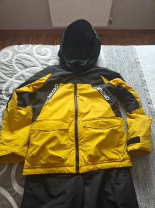 Conjunto de chaqueta y pantalón para la nieve. - Chaqueta de color amarillo y negro con capucha. - Pantalón de color negro. - Talla en la última foto