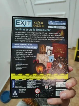 Juego de mesa Exit: El Señor de los Anillos - Sombras sobre la Tierra Media. - Juego de escape para 1-4 jugadores. - Nivel de principiante. - Basado en la saga de El Señor de los Anillos. - Diseñado por Inka y Markus Brand.