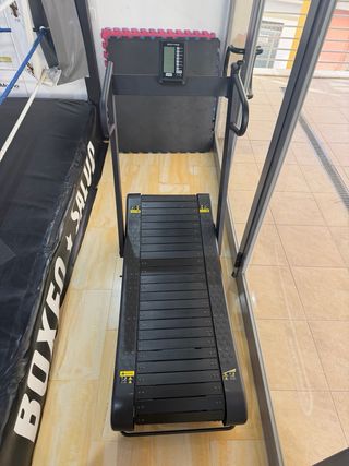 Cinta de correr curva de alta resistencia. Diseñada para un entrenamiento intenso y eficiente. - Superficie de carrera curva. - Estructura robusta y duradera. - Diseño moderno y funcional.