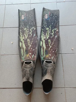 Aletas de carbono diseñadas para la pesca submarina. Cuentan con un diseño llamativo. - Pala de carbono. - Pala con diseño camuflaje. - Pala con logo apa - Pala con diseño de pez.