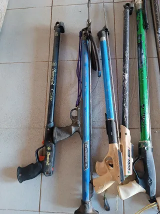 Conjunto de fusiles de pesca submarina. SE VENDE TODO JUNTO. - Varios modelos y tamaños. - Diseños ergonómicos para un agarre cómodo. - Mecanismos de disparo integrados.