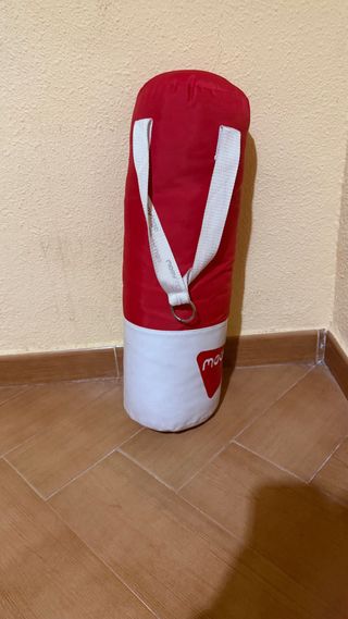 Saco de boxeo de la marca Moov'ngo, ideal para entrenamiento. - Color rojo y blanco. - Dos asas superiores con anillas para colgar.