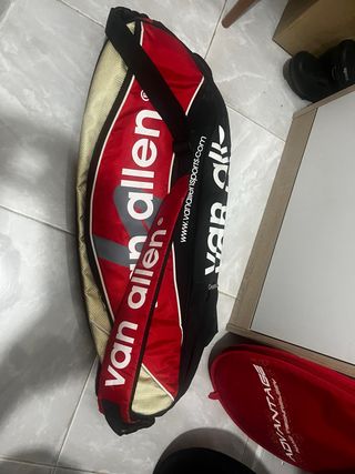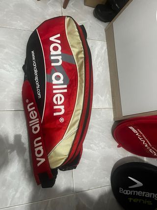 Raquetero de la marca Van Allen, ideal para transportar tus raquetas y accesorios. - Diseño en color rojo y negro. - Incluye dos raquetas de regalo.