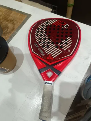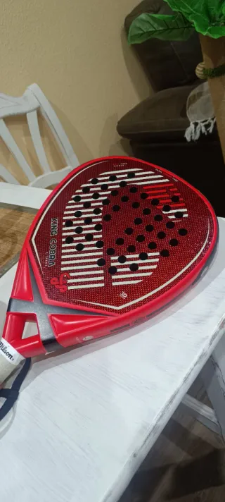 Pala de pádel Vibor-a King Cobra 3K con un diseño llamativo en color rojo y negro. - Modelo King Cobra. - Tecnología 3K. - Año 2024. - 5 Partidos de uso - 1 overgrip de regalo totalmente nuevo