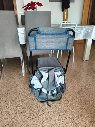 Práctica silla de pesca plegable de la marca STORM. Fácil de transportar y guardar. - Estructura metálica. - Asiento y respaldo de tela. - Diseño compacto.