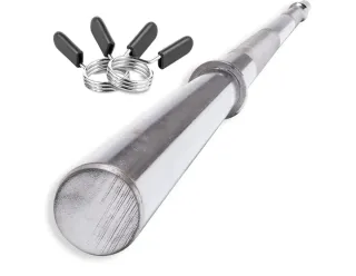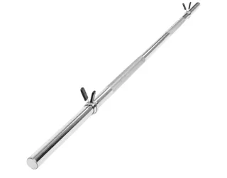 Barra de pesas de aspecto brillante y pulido. - Material: Metal cromado. - Diseño con zonas moleteadas para un mejor agarre. - 2 presas de muelle incluidas. Mide 120cm de largo.