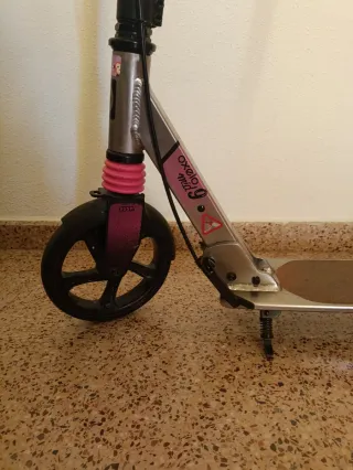 Vendo patinete MID 9 rosa, ideal para desplazamientos urbanos y paseos. Perfecto para niños (aprox. 9 a 14 años / 1,25 m a 1,75 m, máximo 100kg) ✅ Ruedas grandes de 175 mm (goma PU) con rodamientos ABEC 5 – deslizamiento suave y rápido ✅ Suspensión delantera – absorbe mejor las vibraciones ✅ Freno en el manillar + freno trasero – mayor control y seguridad ✅ Altura ajustable ✅ Sistema de plegado rápido con doble seguridad ✅ Ligero (5 kg) y fácil de transportar Es un patinete muy cómodo, estable y resistente. Ideal para moverse por ciudad o para paseos largos. 💬 Cualquier duda, escríbeme.