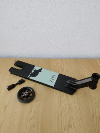 Patinete Lucky Scooter Covenant verde de freestyle, ligero y resistente, ideal para skatepark. Deck robusto, horquilla y manillar de alta calidad, ruedas Lucky originales, que proporcionan buen control y durabilidad. Desgaste normal por su uso, en el deck y un poco en las ruedas, pero un buen estado en general, sin holguras, grietas ni ningun problema de otro estilo. Aproximadamente tiene unos 3 años, pero de uso real no lo utilizé más de 1 año. Muy cuidado en general y muy bonito. Se puede probar sin compromiso, precio negociable y posibilidad de entrega en mano si sois de la zona.