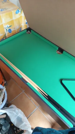 Divertida mesa multijuegos 3 en 1 para horas de entretenimiento. -No se incluyen las paletas de ping pong -Con signos de desgaste en las patas -Para mas información pregunte sin compromiso - Incluye futbolín, billar y ping pong. - Diseño compacto y resistente. - Ideal para toda la familia.