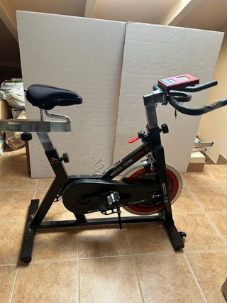 Bicicleta de spinning ECODE modelo Evolution Tour. - Diseño en color negro. - Sillín acolchado. - Manillar ajustable. - Pantalla digital.