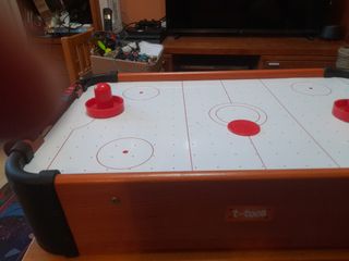 Divertido juego de mesa Air Hockey de la marca T-Toca. Perfecto para pasar horas de entretenimiento. - Incluye dos mazos y dos fichas rojas. - Marcadores laterales para llevar la puntuación.
