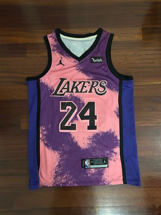 Camiseta de baloncesto Jordan de los Lakers, talla M, con un diseño único. - Número 24 en negro y rosa.