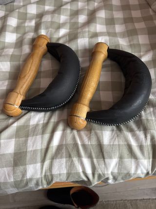 Se venden dos barras para mancuernas con rosca y un diámetro de 28mm. Ideales para añadir peso a tus entrenamientos. - Material: Metal. - Cierre: Roscado. Envío por Wallapop. Recoger en Ortuella.