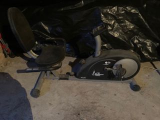 Bicicleta estática en perfectas condiciones. El cuenta km es lo único que no funciona. Solo recogida en mano - Asiento acolchado. - Bandeja superior.