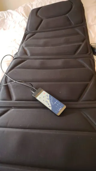 Colchoneta de masaje negra con mando a distancia. - Diseño acolchado para mayor comodidad. - Mando para controlar las funciones de masaje.