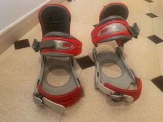 Fijaciones de snowboard Burton Freestyle en talla M. Diseñadas para ofrecer comodidad y rendimiento en la montaña. - Color gris y rojo. - Correas ajustables para un buen agarre. - Base robusta para mayor estabilidad. - Con desgaste propio del uso pero le quedan muchos años de vida. ** Las imágenes son parte de la descripción.