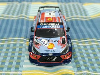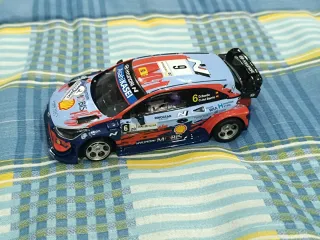 Coche de miniatura Hyundai WRC. - Diseño detallado de rally. - Colores vivos y gráficos de patrocinadores.