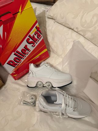Zapatillas deportivas blancas con ruedas. - Diseño moderno y cómodo. - Incluye ruedas y herramientas para su montaje. Talla 36. Nuevos sin estrenar Solo envío