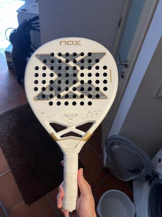 Pala de pádel Nox AT10 12K del año 2026. Esta nueva usada 2 partidos con protector peso 369g. Cambio por adidas metalbone HRD 2026 en iguales condiciones