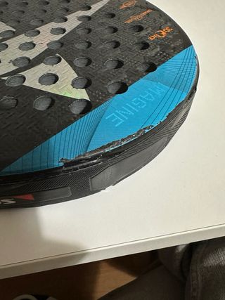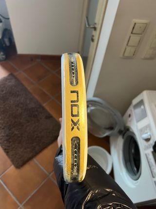 Pala de pádel Nox AT10 18K del 2024 La pala tiene 7 usos pero uno de ellos fue en pista de cemento y de ahi los saltos de pintura. Funciona a la perfección. Me interesa cambio por technical viper (Juan Lebron o normal ) del mismo año o posterior y pondría dinero.
