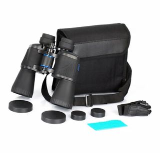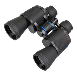 Prismáticos de color negro con detalles en azul. - Diseño ergonómico. - Lentes con recubrimiento.