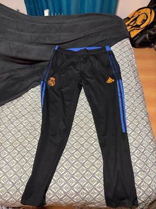 Pantalón oficial del Real Madrid con diseño de Adidas. - Color negro. - Detalles en azul y naranja. - Logo del Real Madrid. - Logo de Adidas.