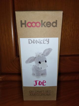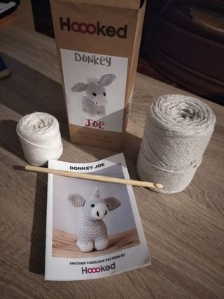 Kit para crear un adorable amigurumi de un burro llamado Joe. - Incluye todo lo necesario para tejer. - Diseño de Hooked. - Ideal para manualidades.