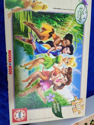 Puzles precioso, de 100 piezas de campanilla y princesas Disney. En perfecto estado . Y lo estupendo es k es de madera,mucho más duro y resistente.