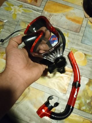 Set de gafas de buceo con tubo de snorkel. - Lente de cristal templado. - Diseño ergonómico para mayor comodidad. - Tubo con boquilla flexible. Están sin estrenar Me costaron nuevas 30 euros Escucho ofertas