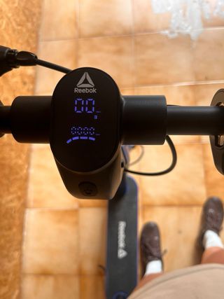 Patinete eléctrico de la marca Reebok en color azul. Diseñado para desplazamientos urbanos. - Manillar ajustable. - Ruedas negras. - Plataforma con logo Reebok. - Caja original