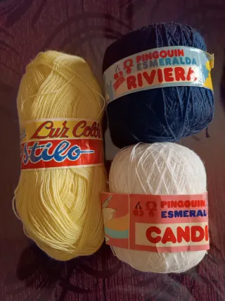 Lote de tres ovillos de hilo perlé en diferentes colores. Ver fotos para ver composición, peso y otras características.