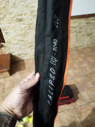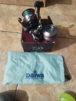 Combo de pesca spinning eging Calipso. Carrete Daiwa Ninja 3000A Lote de pajaritas y paseantes - Modelo: Calipso EGI - 8040 EVO. - Color: Negro con detalles naranjas.