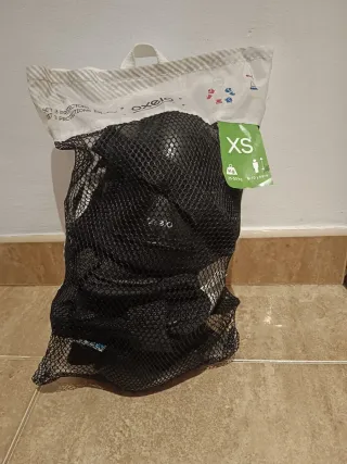Se venden patines Oxelo en buen estado, ideales para iniciarse en el patinaje. Incluyen protecciones para todo el cuerpo. - Patines en línea. - Color negro y rojo. - Cierre de velcro y hebilla.