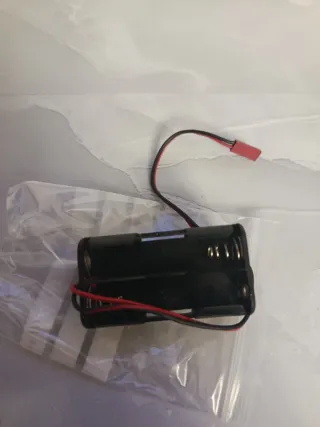 Portapilas para 2 pilas AA con cables y conector JST. - Color negro. - Cables rojo y negro.